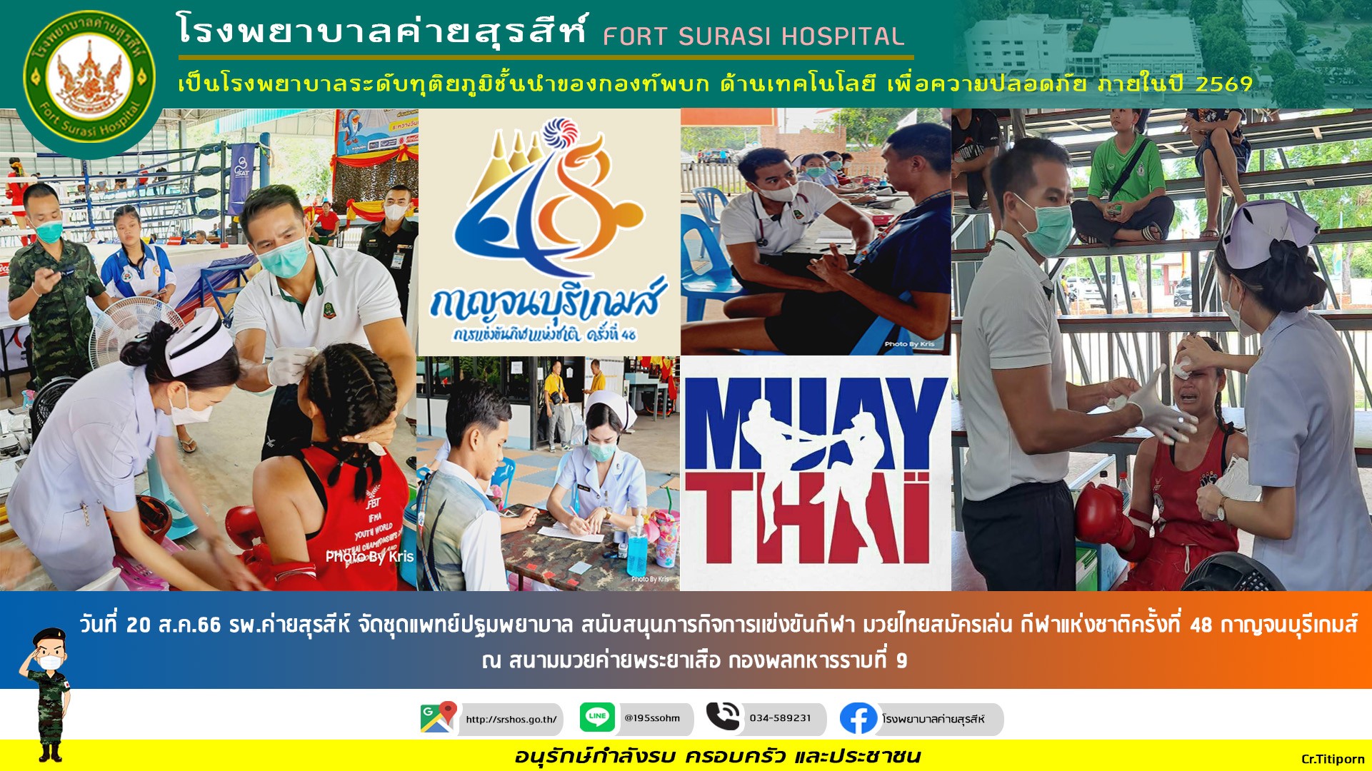 เมื่อวันที่ 20 ส.ค.66 รพ.ค่ายสุรสีหั จัดชุดเพทย์ปฐมพยาบาล สนับสนุนภารกิจการแข่งขันกีฬา