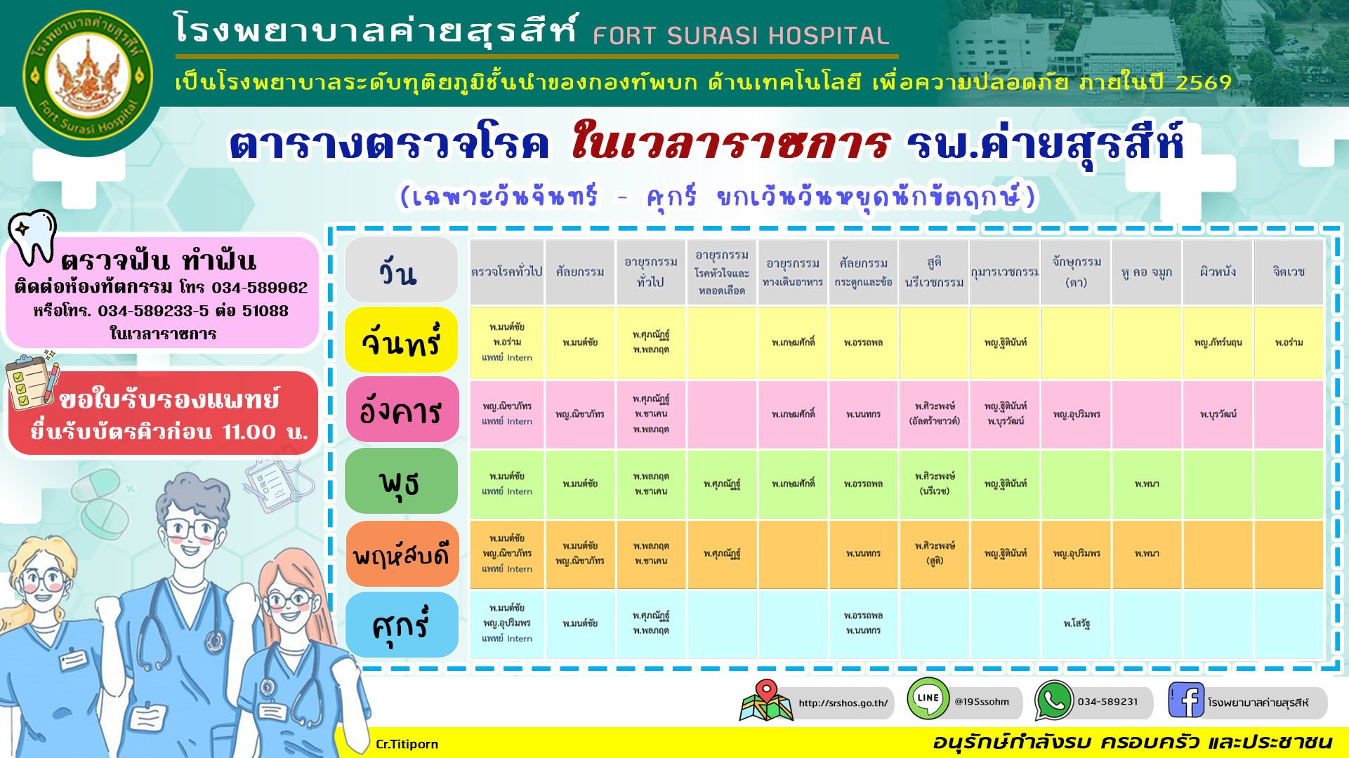 ตารางตรวจโรค "ในเวลาราชการ" รพ.ค่ายสุรสีห์