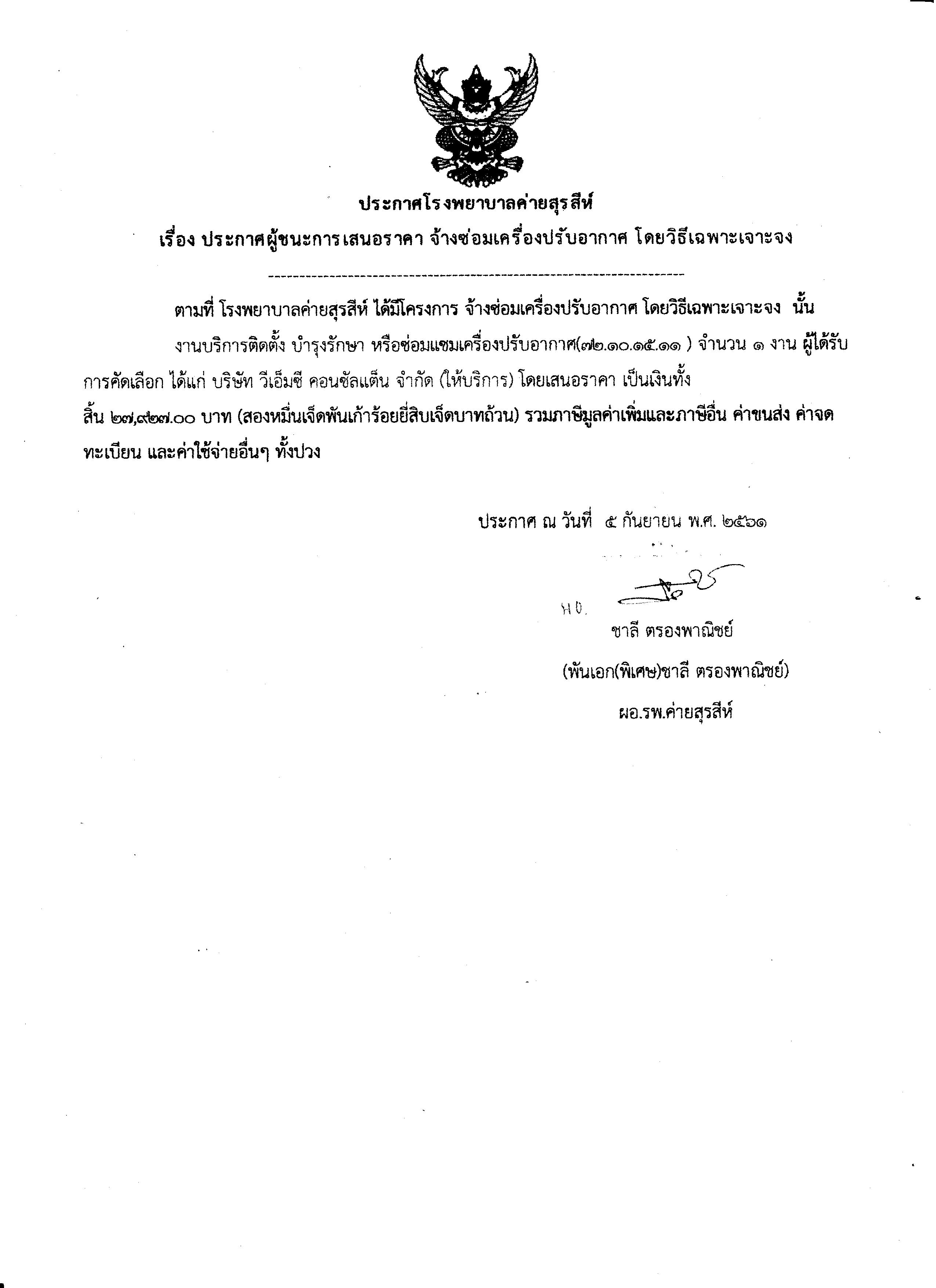 ประกาศผการเสนอราคา จัดจ้างซ่อมเครื่องปรับอากาศ จำนวน 11 รายการ